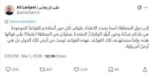 وجّه علي لاريجاني، أمين المجلس الأعلى للأمن القومي الإيراني، رسالة واضحة إلى دول المنطقة على خلفية العدوان الأميركي–الإسرائيلي على إيران واغتيال قائد الثورة الإسلامية، مؤكّدًا أن طهران ليست بصدد شن أي هجوم على جيرانها،