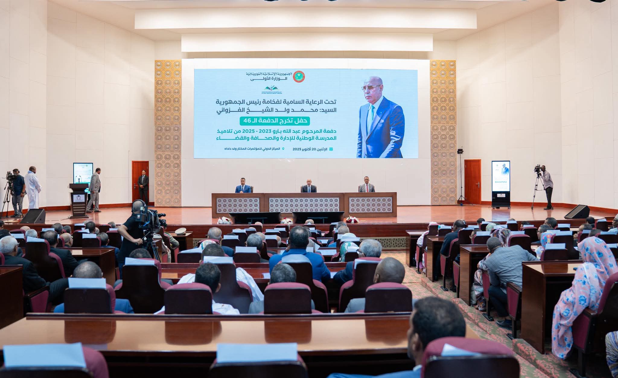 أشرف رئيس الجمهورية، السيد محمد ولد الشيخ الغزواني، مساءىاليوم الاثنين بالمركز الدولي للمؤتمرات (المختار ولد داداه )، على فعاليات حفل تخرج الدفعة الـ46 لطلاب المدرسة الوطنية للإدارة والصحافة والقضاء.