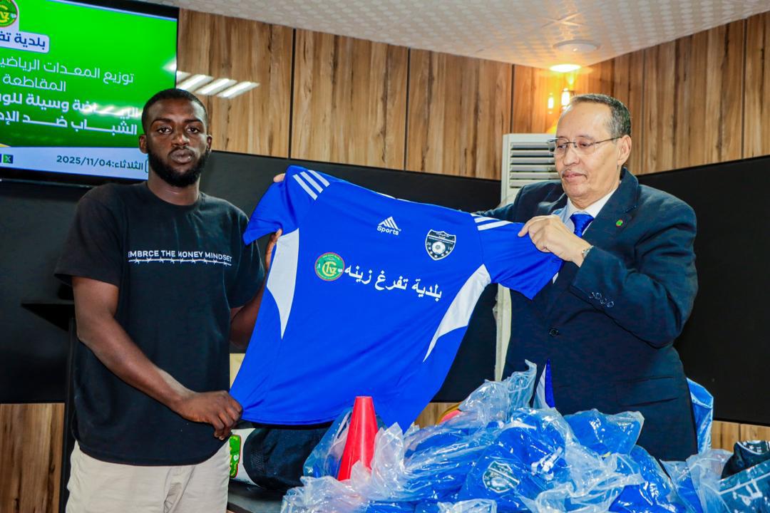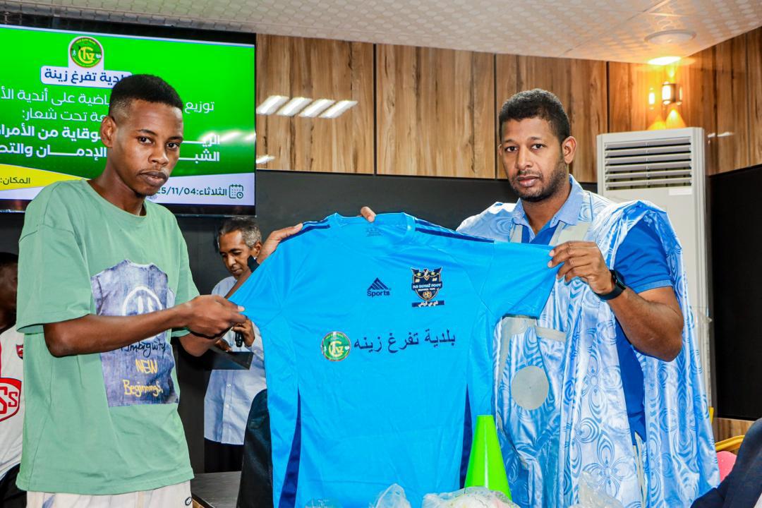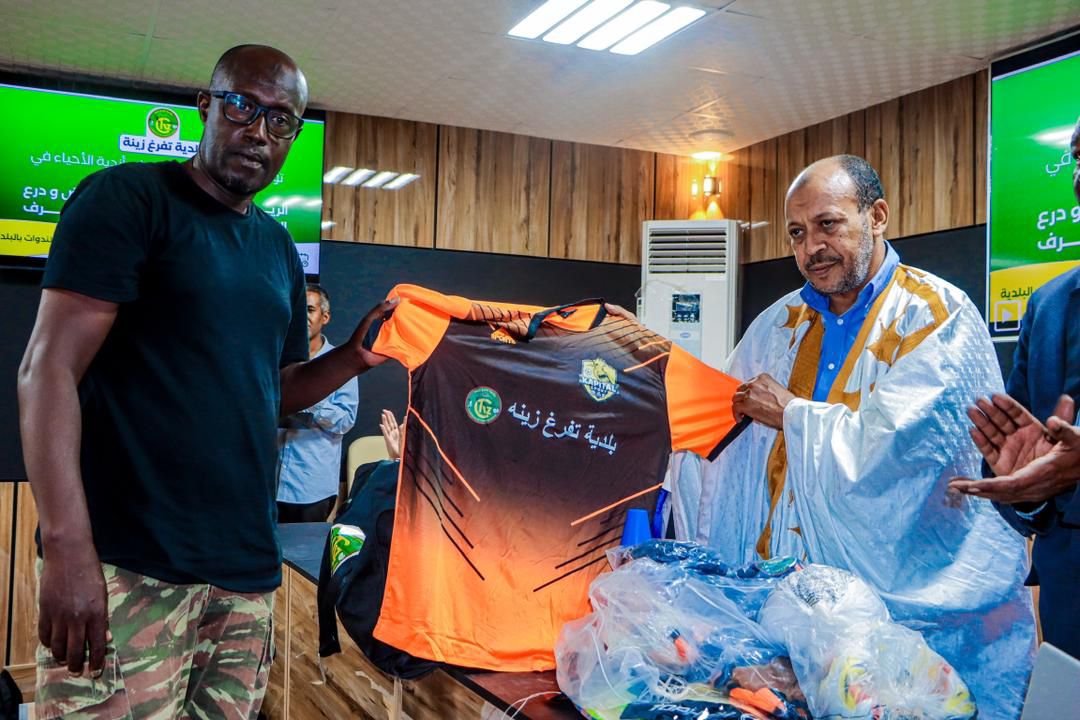 وجرى حفل توزيع المعدات الرياضية تحت إشراف عمدة بلدية تفرغ زينة السيد الطالب عبد الرحمن المحجوب والعمدة المساعد السيد سيدي محمد زروق ورئيس لجنة الرياضة والثقافة على مستوي المجلس البلدي ، السيد كريم محفوظ وبعض أعضاء المجلس البلدي ورئيس مصلحة الشؤون الاجتماعية في البلدية ورؤساء الأندية الرياضية واللاعبين.