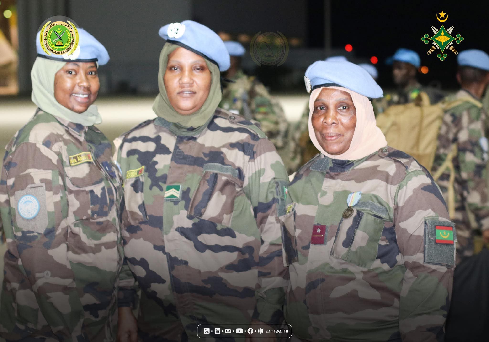 وكان في استقبال الكتيبة لدى وصولها نواكشوط، مسؤولون عسكريون بارزون، من بينهم العقيد الحسن الشريف، قائد فرقة الدعم المساعد، والعقيد نيانغ عليون، قائد مكتب العمليات الخارجية، إلى جانب المقدم محمد محمود موسى والمقدم محمد عبد الودود محمدن.