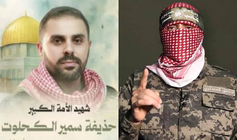 وجاء في بيان للكتائب "ننعى القائد الملثم أبو عبيدة باسمه الحقيقي حذيفة سمير عبد الله الكحلوت (أبو إبراهيم) الناطق باسم كتائب القسام.