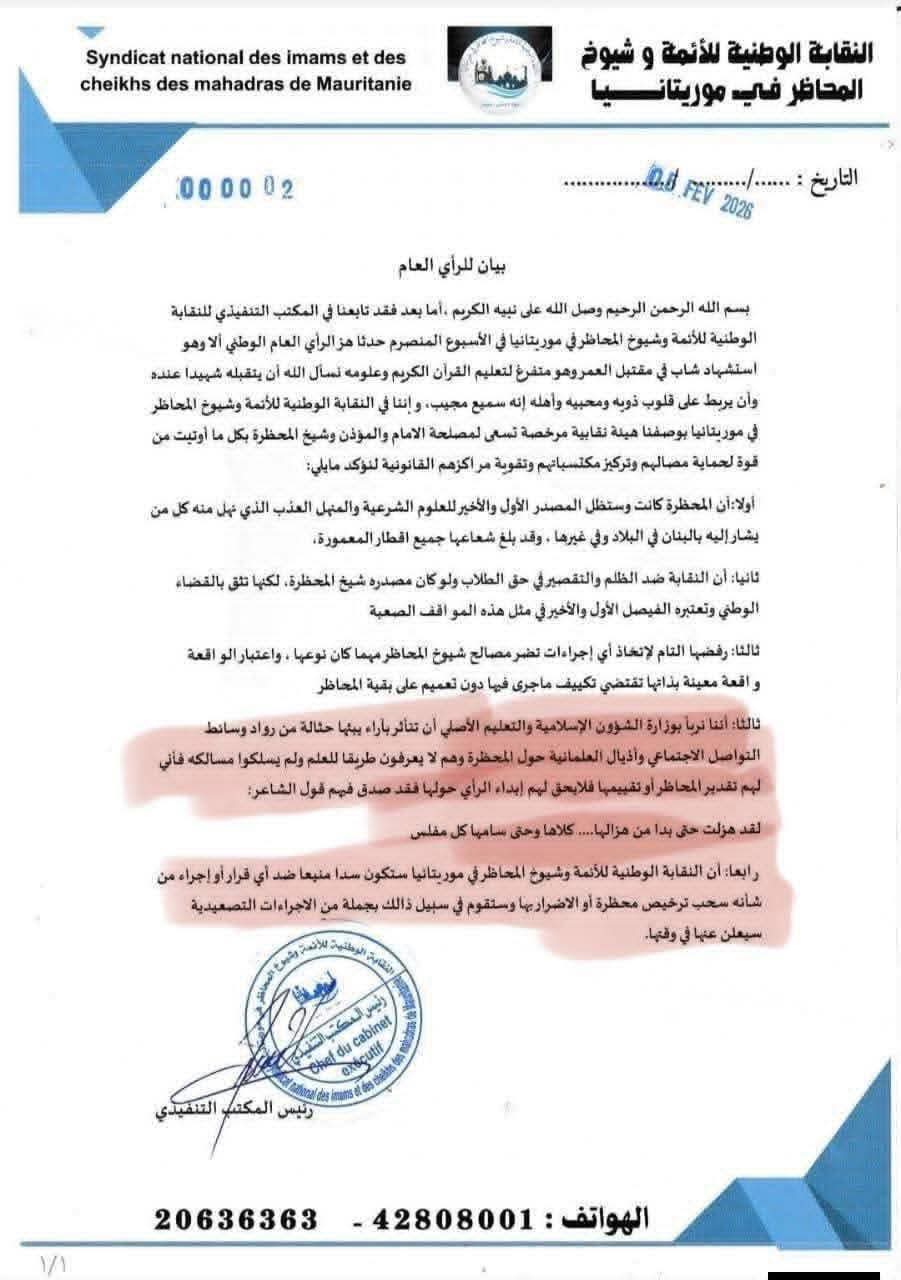 يعكس البيان استمرار الجدل حول حدود المساءلة داخل المؤسسات الدينية، والتوازن بين صون مكانتها التاريخية وضمان خضوعها للقانون. فبين الدفاع عن سمعة المحاظر، والمطالبة بحماية حقوق التلاميذ، تبرز الحاجة إلى مقاربة هادئة تقوم على تحقيق شفاف يحدد الوقائع والمسؤوليات بعيداً عن التشنج أو الاتهامات المتبادلة، بما يحفظ كرامة الضحية ويعزز الثقة في المؤسسات التعليمية والدينية على حد سواء.