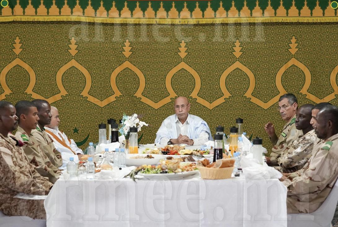 وقال الرئيس غزواني، في كلمة بالمناسبة، إنه يحرص خلال شهر رمضان المبارك على تنظيم زيارات للتشكيلات العسكرية، خاصة المرابطة على الحدود، مضيفًا أنه قرر هذا العام تنظيم الإفطار الرمضاني في حامية أطار لما تضمه من تشكيلات عسكرية جاهزة لأداء الواجب، إضافة إلى مؤسسات تعنى بتعليم وإعداد القادة.