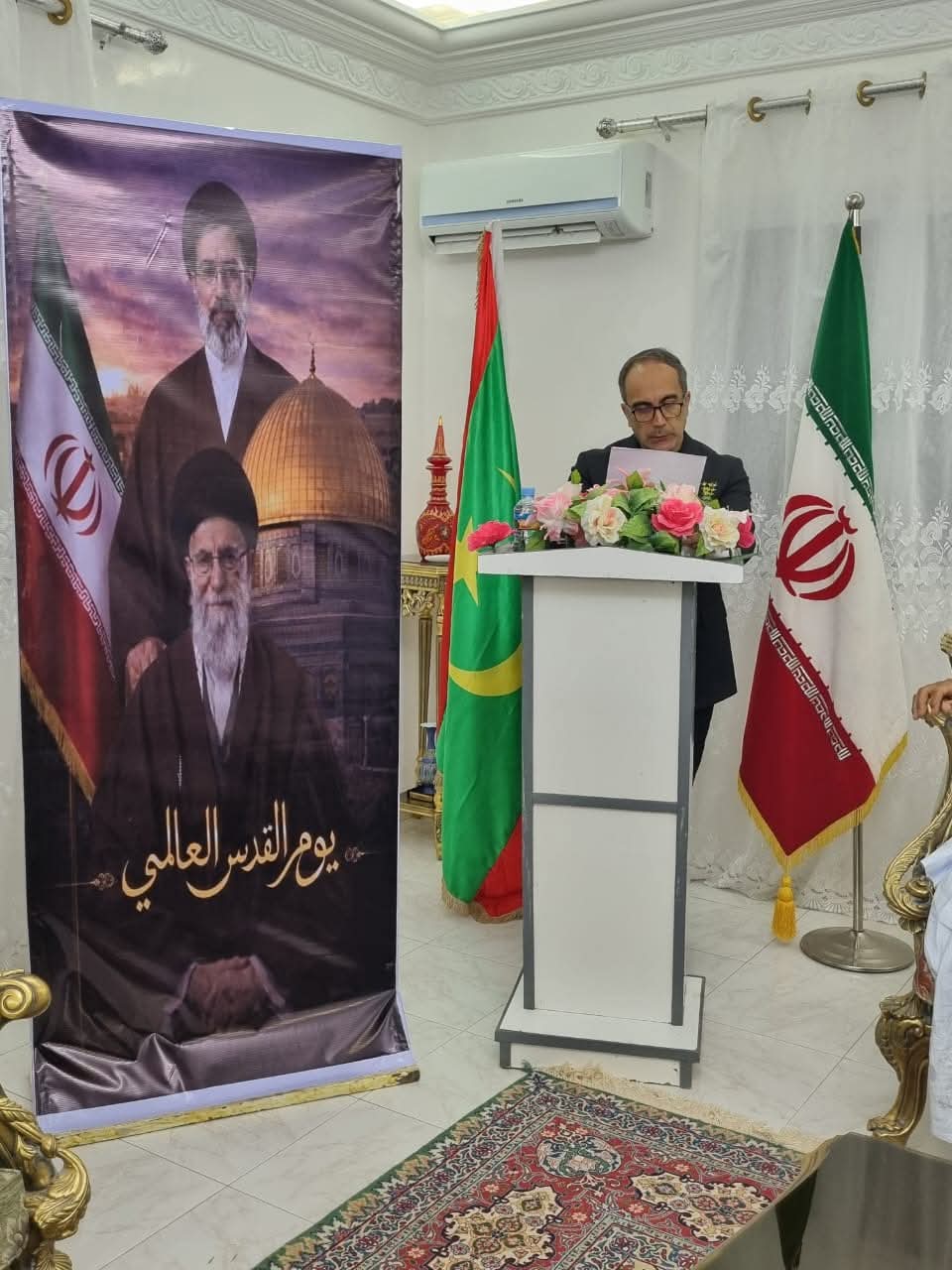 أُقيمت مساء الجمعة 13 مارس/آذار 2026 في نواكشوط حفل لإحياء يوم القدس العالمي، وذلك في مقر إقامة جواد أبو سفير الجمهورية الإسلامية الإيرانية لدى موريتانيا، بحضور عدد من رؤساء الأحزاب السياسية وشخصيات مهتمة بالشأن العام.