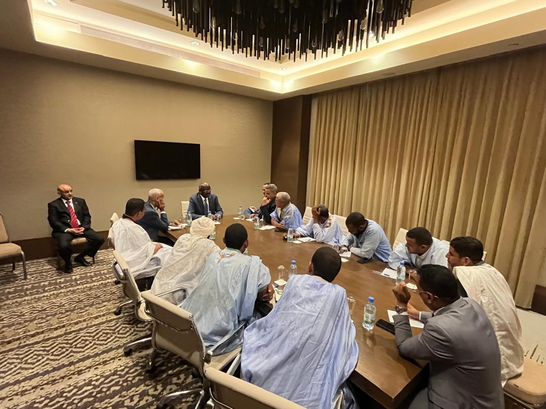 عقد وزير الشؤون الخارجية والتعاون الإفريقي والموريتانيين في الخارج، السيد محمد سالم ولد مرزوك، على هامش زيارته الرسمية إلى جمهورية مالي، لقاءً مع ممثلي الجالية الموريتانية المقيمة في هذا البلد، وذلك بمقر إقامته في باماكو، بحضور أعضاء البعثة الدبلوماسية والوفد المرافق لمعاليه.