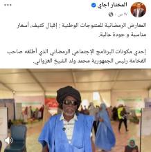 قال الوزير الأول المختار ولد اجاي، إن المعارض الرمضانية للمنتوجات الوطنية تشهد إقبالًا كثيفًا من المواطنين، مع أسعار مناسبة وجودة عالية للمنتجات المعروضة.