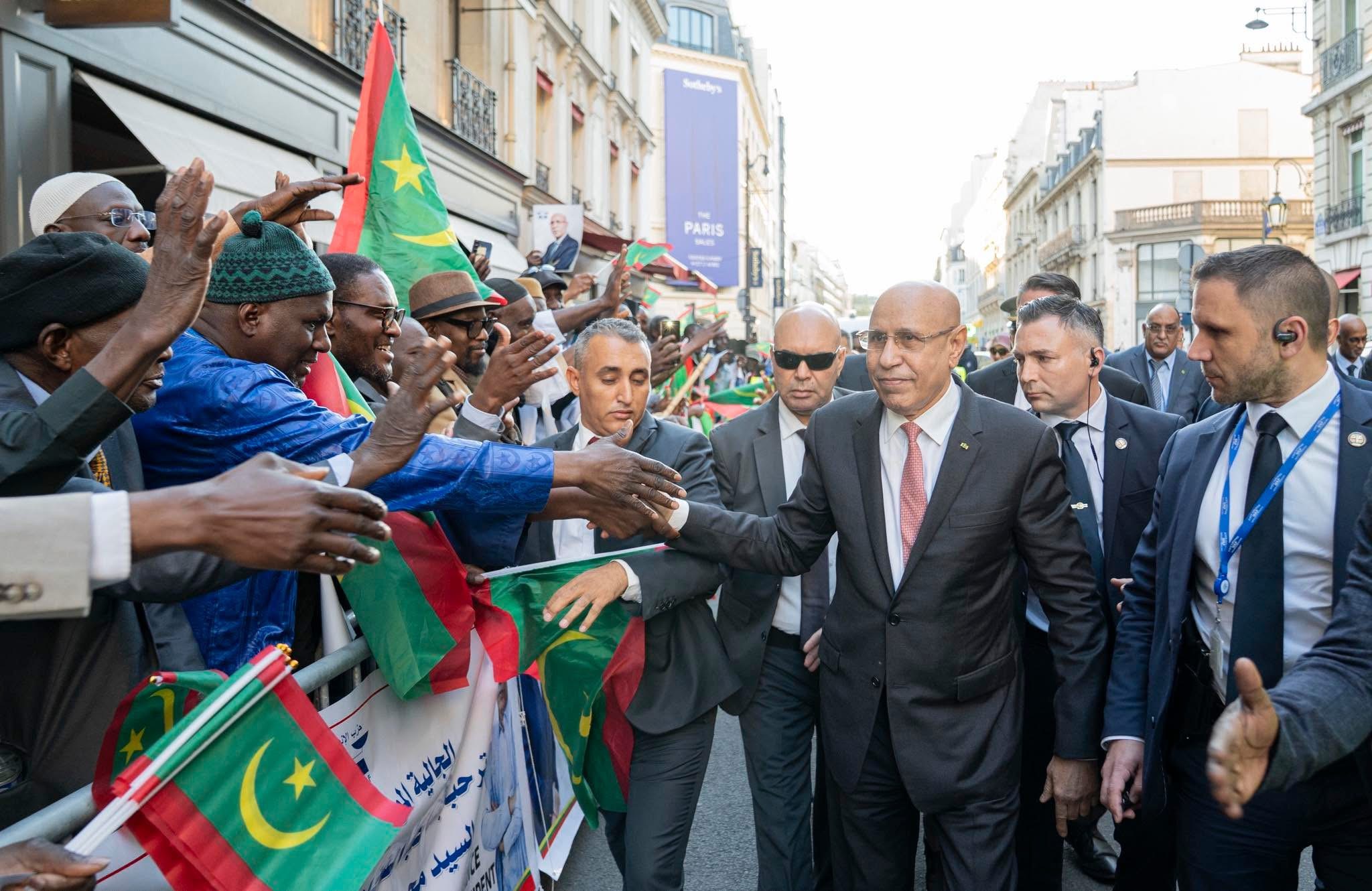 نظمت الجالية الموريتانية في العاصمة الفرنسية باريس استقبالًا حاشدًا لرئيس الجمهورية، محمد ولد الشيخ الغزواني، أمام مقر إقامته، وذلك بمناسبة الزيارة التي بدأها اليوم إلى فرنسا.